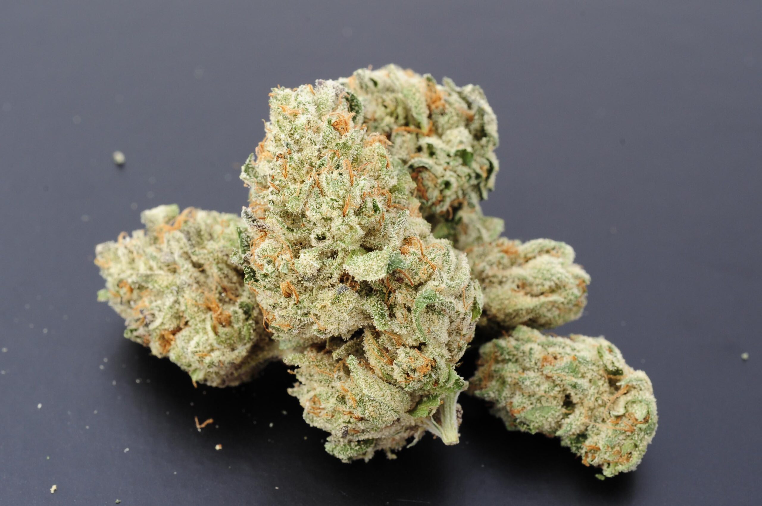 Grape Pie is an indica dominant hybrid strain created through crossing the delicious Grape Stomper X Cherry Piestrains. After one taste of this delicious pie, you’ll totally want to take another bite again and again. This baby has a rich fruity berry pie flavor with a nutty exhale that’s slightly spicy. The aroma is of earthy herbs and fruity berries with a sweet sugary and spicy overtone that lingers long after the nugs are burned away. The Grape Pie high is just as intoxicating as the flavor, with euphoric effects that will have you kicking back in no time at all. It starts in the head with a light tingly feeling that quickly expands through both mind and body, leaving you feeling totally euphoric and kicked back before you know it. This won’t leave you feeling too sedated or sleepy, rather just completely at ease with the world around you. With these effects and its high 20-22% average THC level, Grape Pie is often chosen to treat those suffering from conditions such as chronic stress or anxiety, depression, insomnia, chronic pain and mood swings. This bud has small rounded dark olive green nugs with deep orange hairs and a coating of tiny frosty amber crystal trichomes.